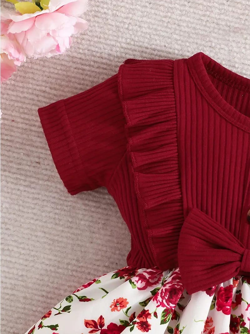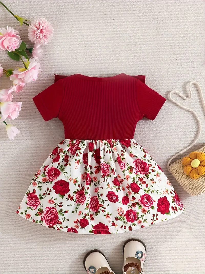 Let your little one shine in this adorable red and floral dress! Featuring a rich red ribbed bodice and a flowy skirt with a vibrant rose print, this dress is designed to make every moment special. The soft fabric ensures comfort, while the classic fit gives a timeless and elegant look. Perfect for birthdays, family gatherings, and festive occasions!