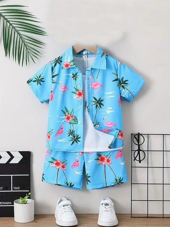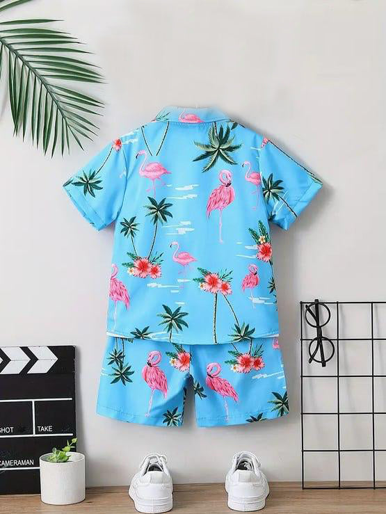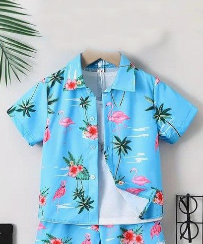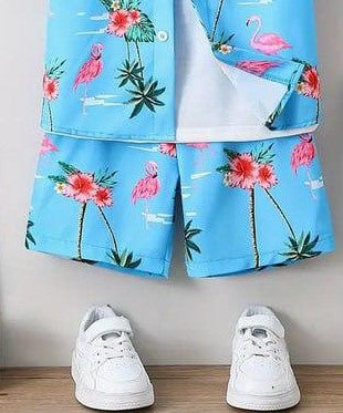 3-piece set: Flamingo Shirt, White T-shirt & Shorts