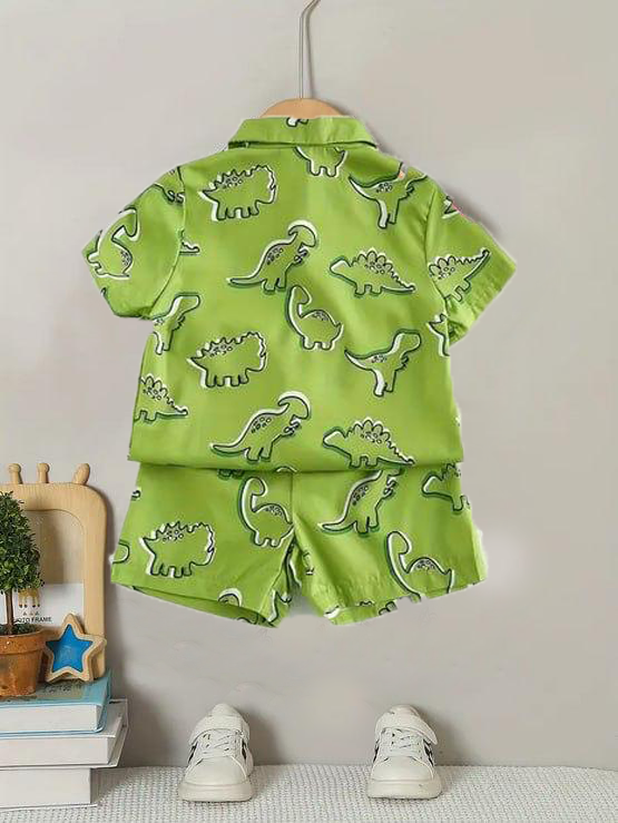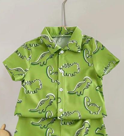 Turn bedtime into a dino-adventure with this green dinosaur-printed kids night suit! Designed with adorable cartoon dinosaurs all over, this set is sure to be your little oneโs favorite for both sleep and play.