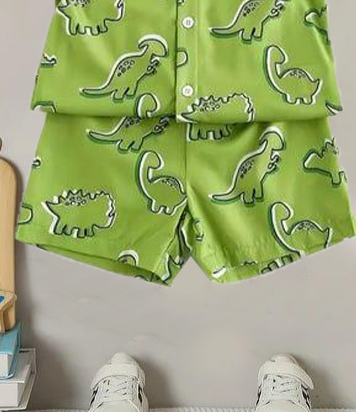 ๐ Shorts: Elastic waistband shorts with matching dino designs for a playful look.