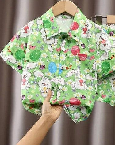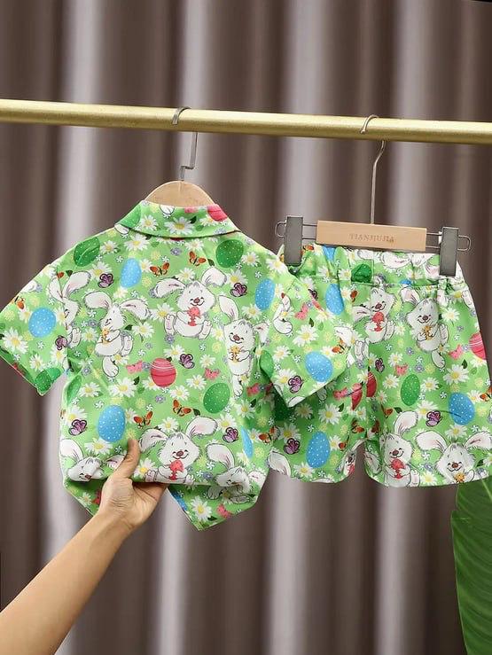 Increase quantity for Green Rabbit Print Boys Shirt & Shorts Set