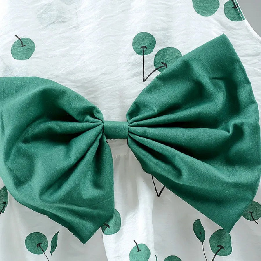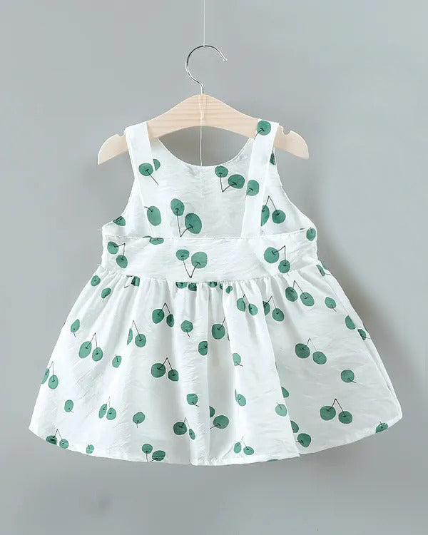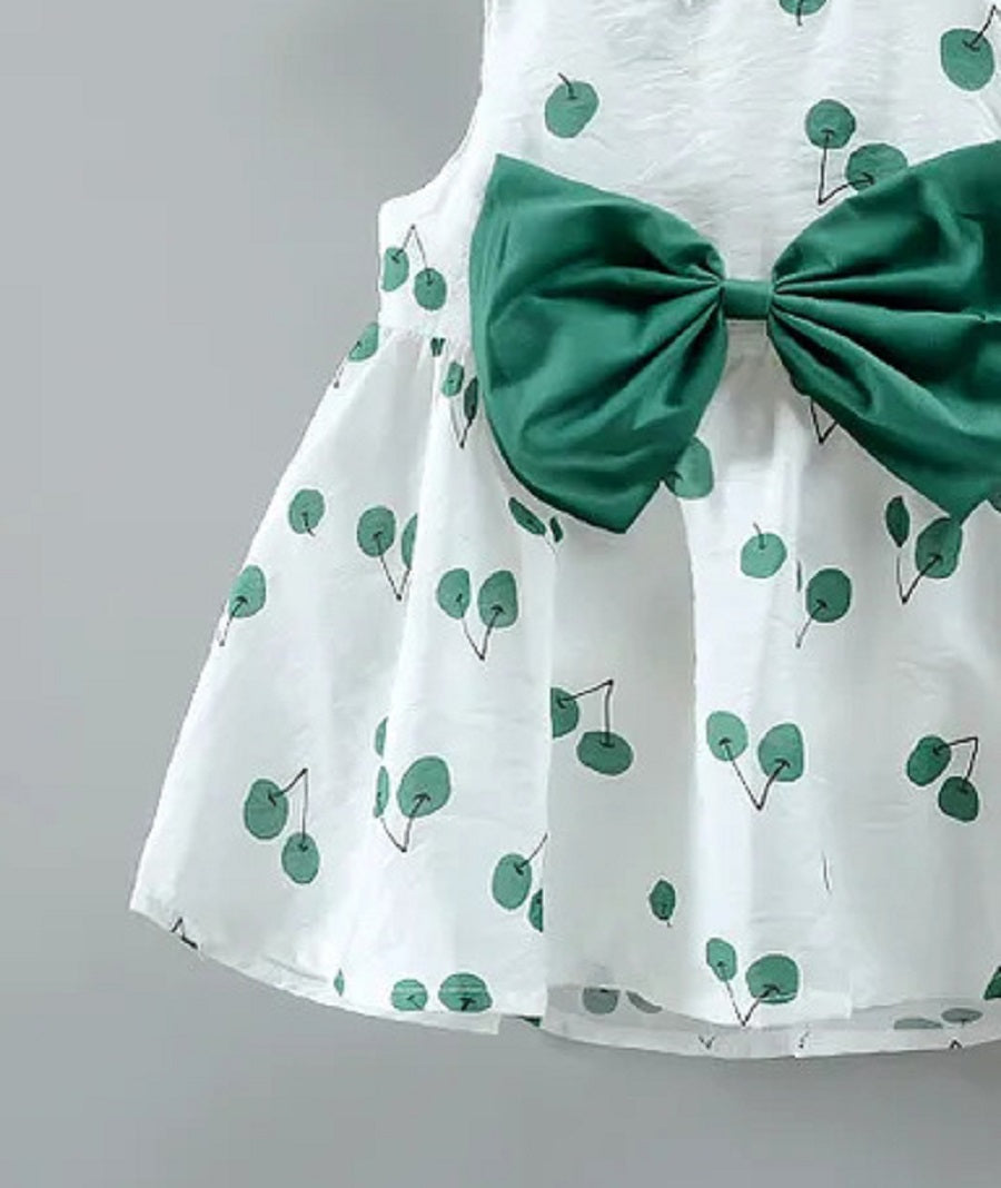 Green Rayon Printed Cherry Frock for Girls 🍒👗