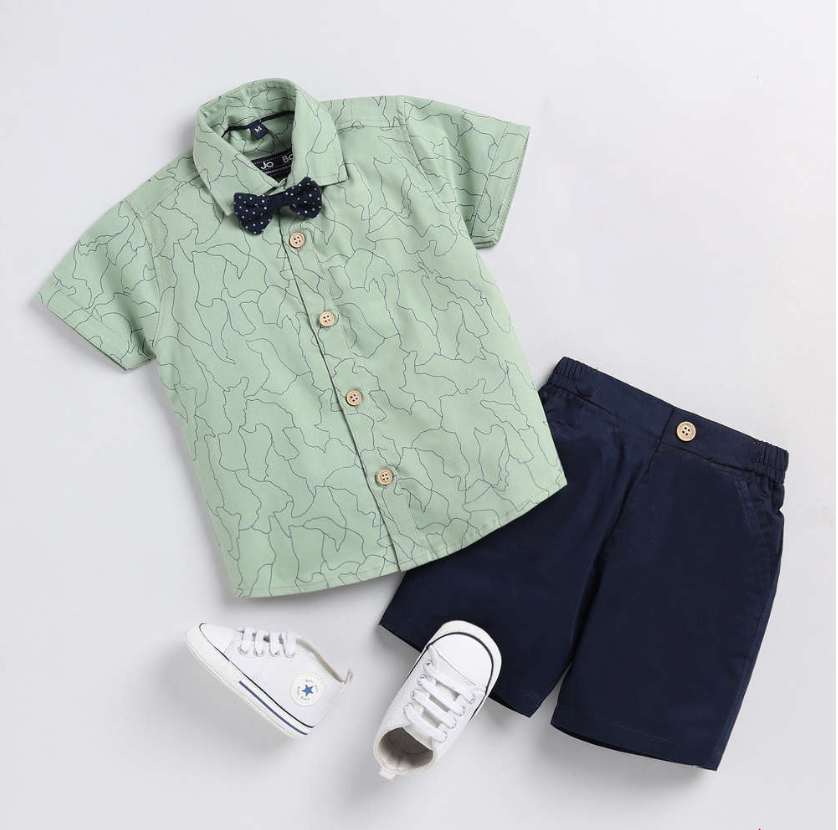 Let your little one step out in cool, nature-inspired style with this green shirt and shorts combo! π³