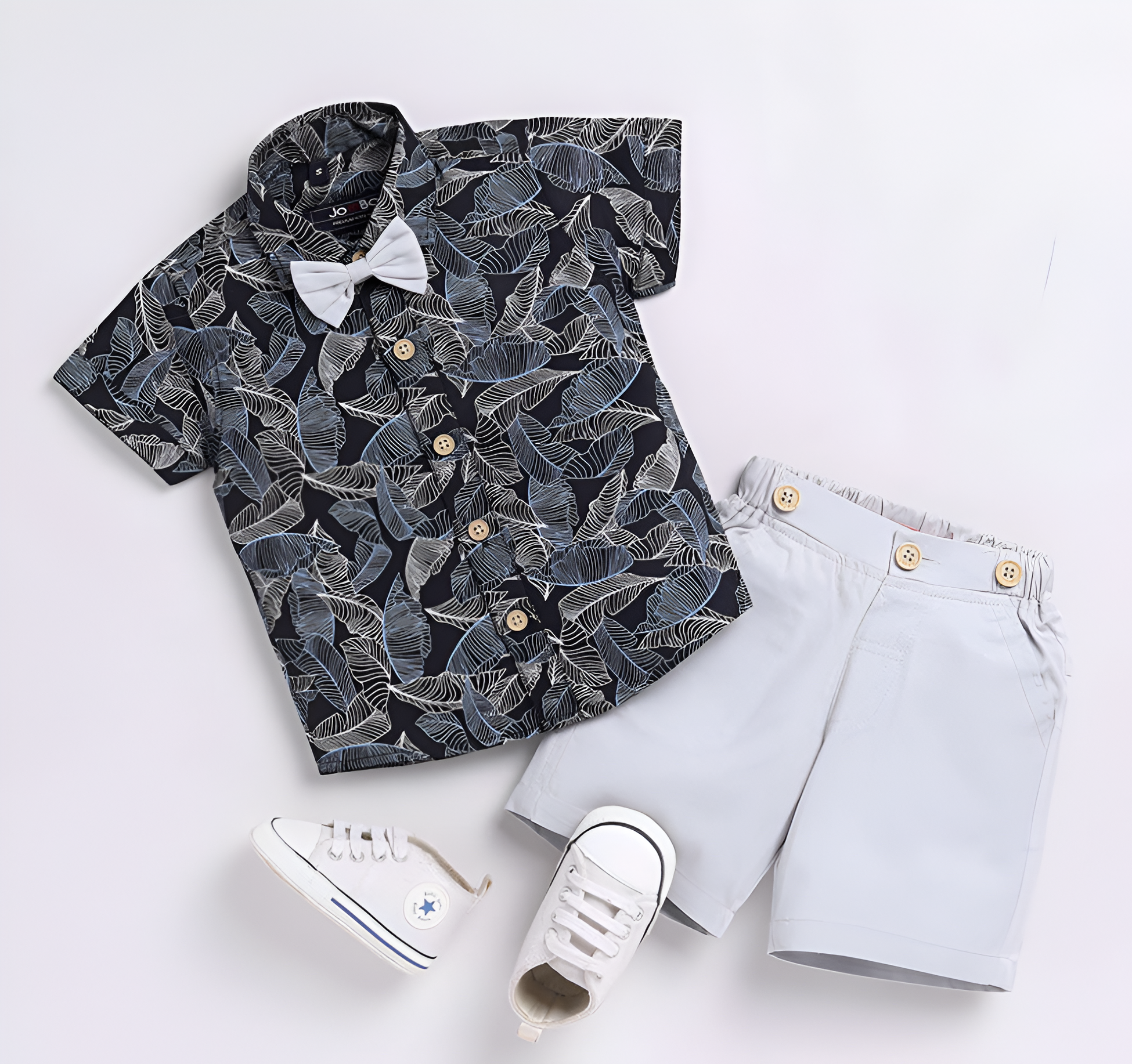 The grey shirt offers a sleek, modern look with a soft fabric that feels comfy all day long 👕🤍. Paired with matching grey shorts 🩳, this outfit is ideal for a day of fun, whether they’re playing at the park 🛝 or hanging out with friends. 😎💥