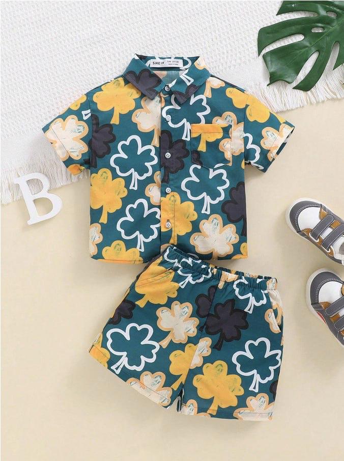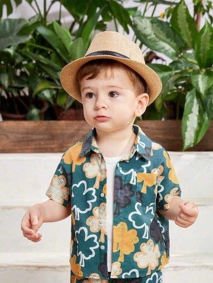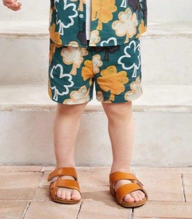 Add a fun and trendy touch to your child’s wardrobe with this Green Tropical Leaf Print Co-ord Set. Designed with comfort in mind, the set includes a short-sleeve button-down shirt and matching shorts in a bold tropical pattern with shades of yellow, cream, and teal. Made from soft, breathable cotton blend, it’s perfect for summer days, vacations, picnics, or casual wear.