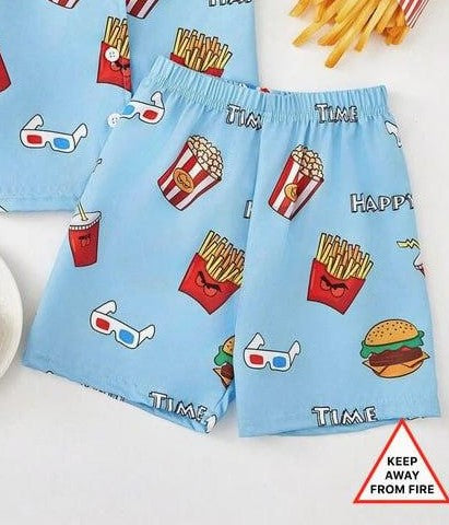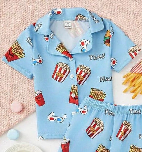 Make bedtime fun and comfy with this McDonald’s-themed kids night suit! Designed with playful prints of fries, popcorn, burgers, and cool 3D glasses, this set is perfect for little foodies who love color and comfort.