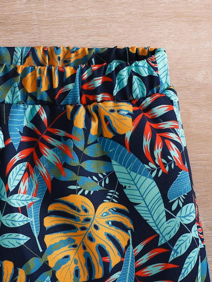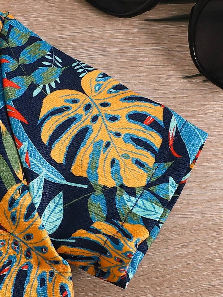 Increase quantity for Navy Blue Tropical Leaf Print Dress For Boy