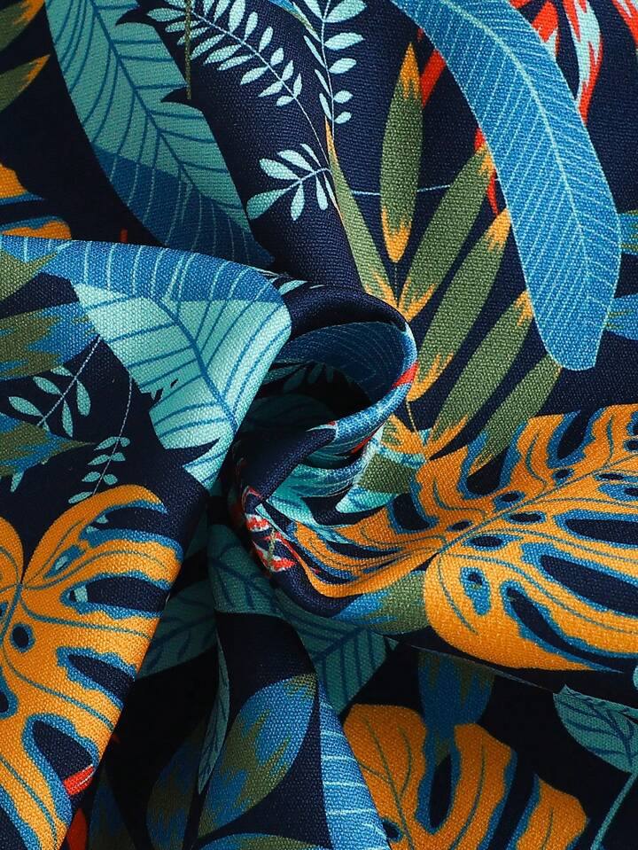 Decrease quantity for Navy Blue Tropical Leaf Print Dress For Boy