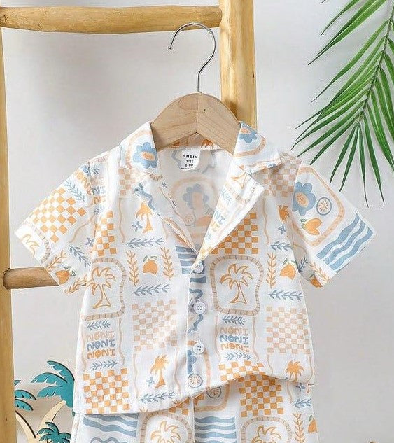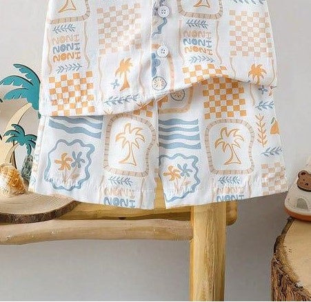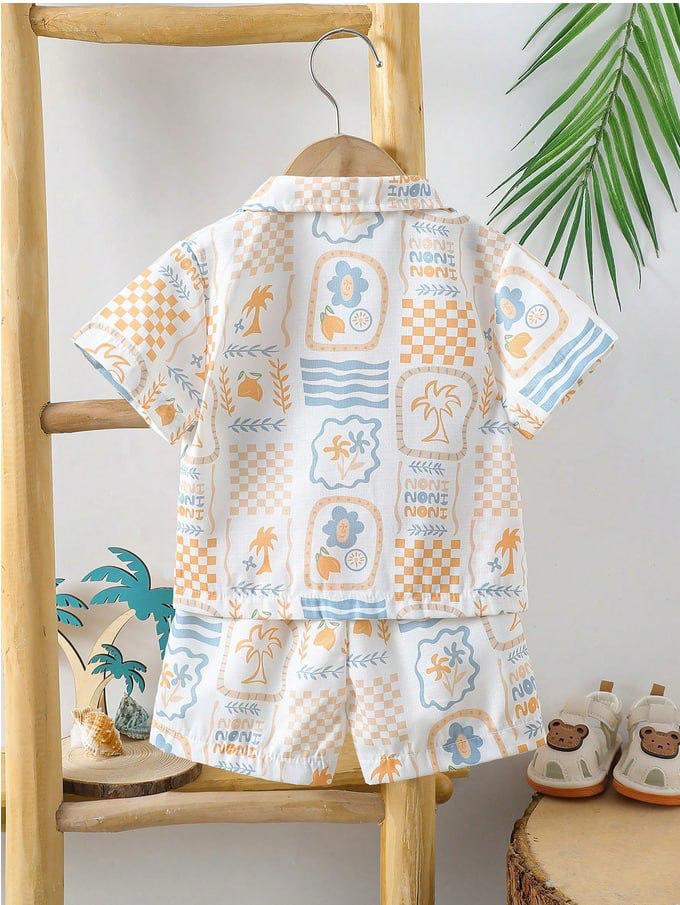 White Palm Tree Print Boys Shirt & Shorts Set