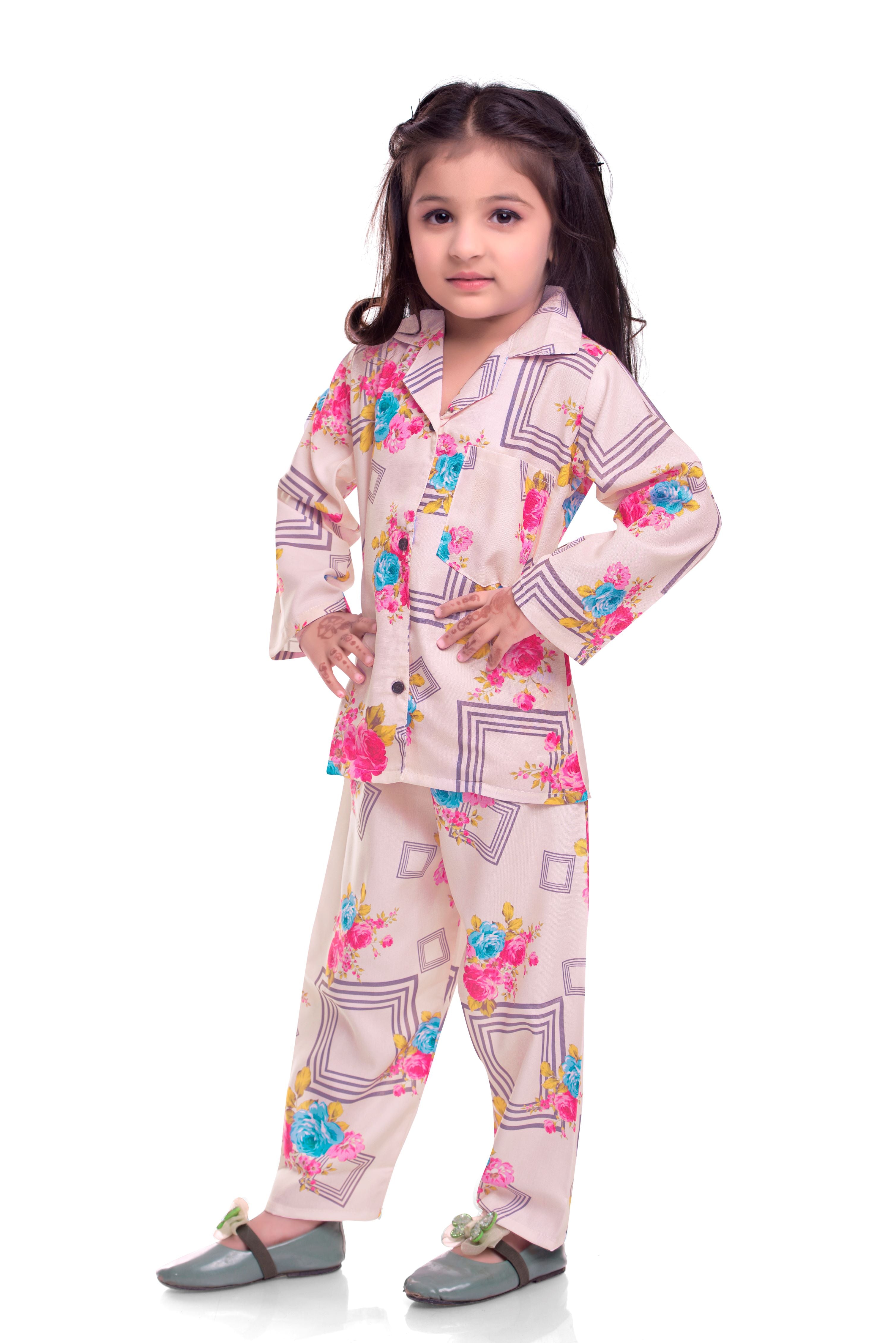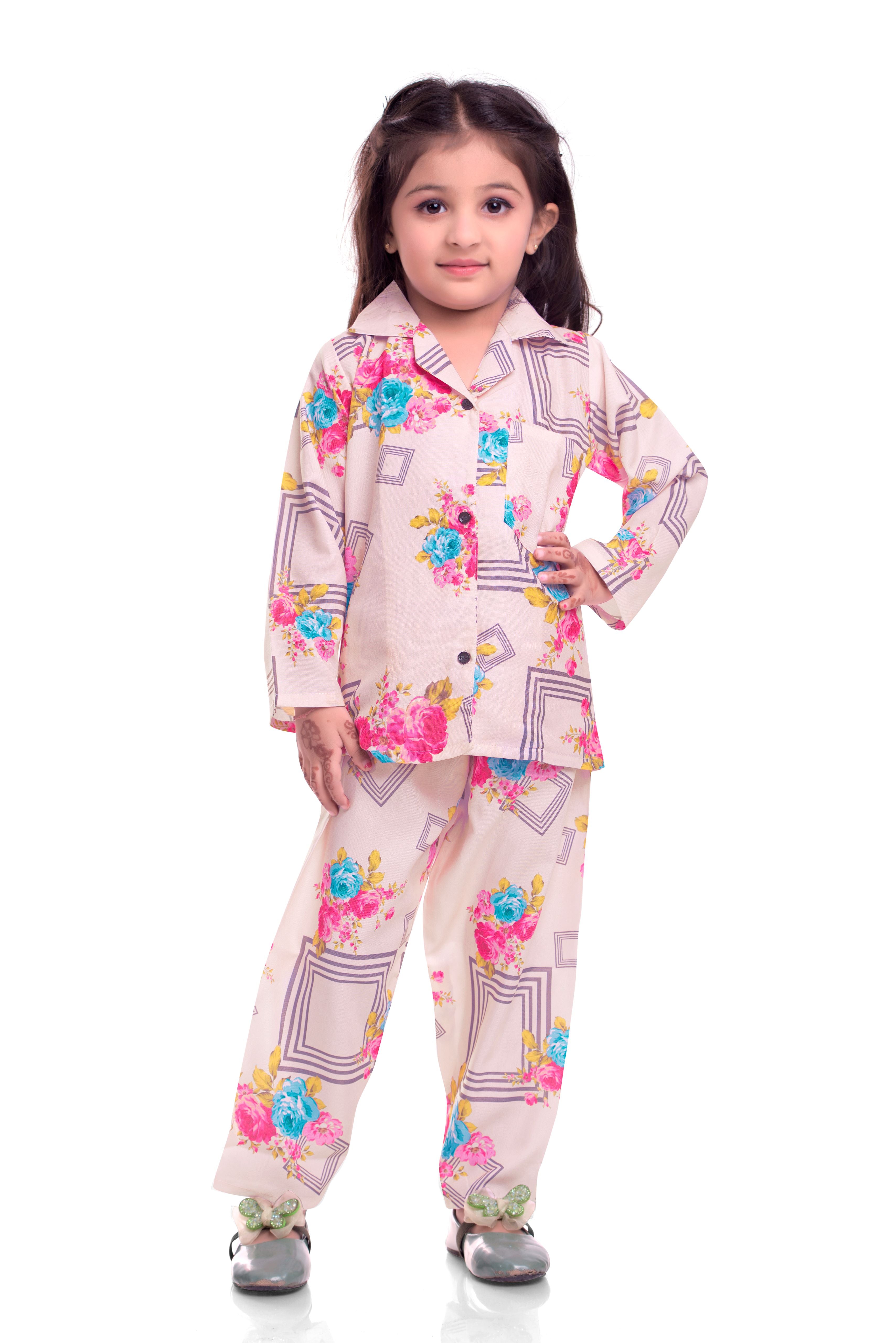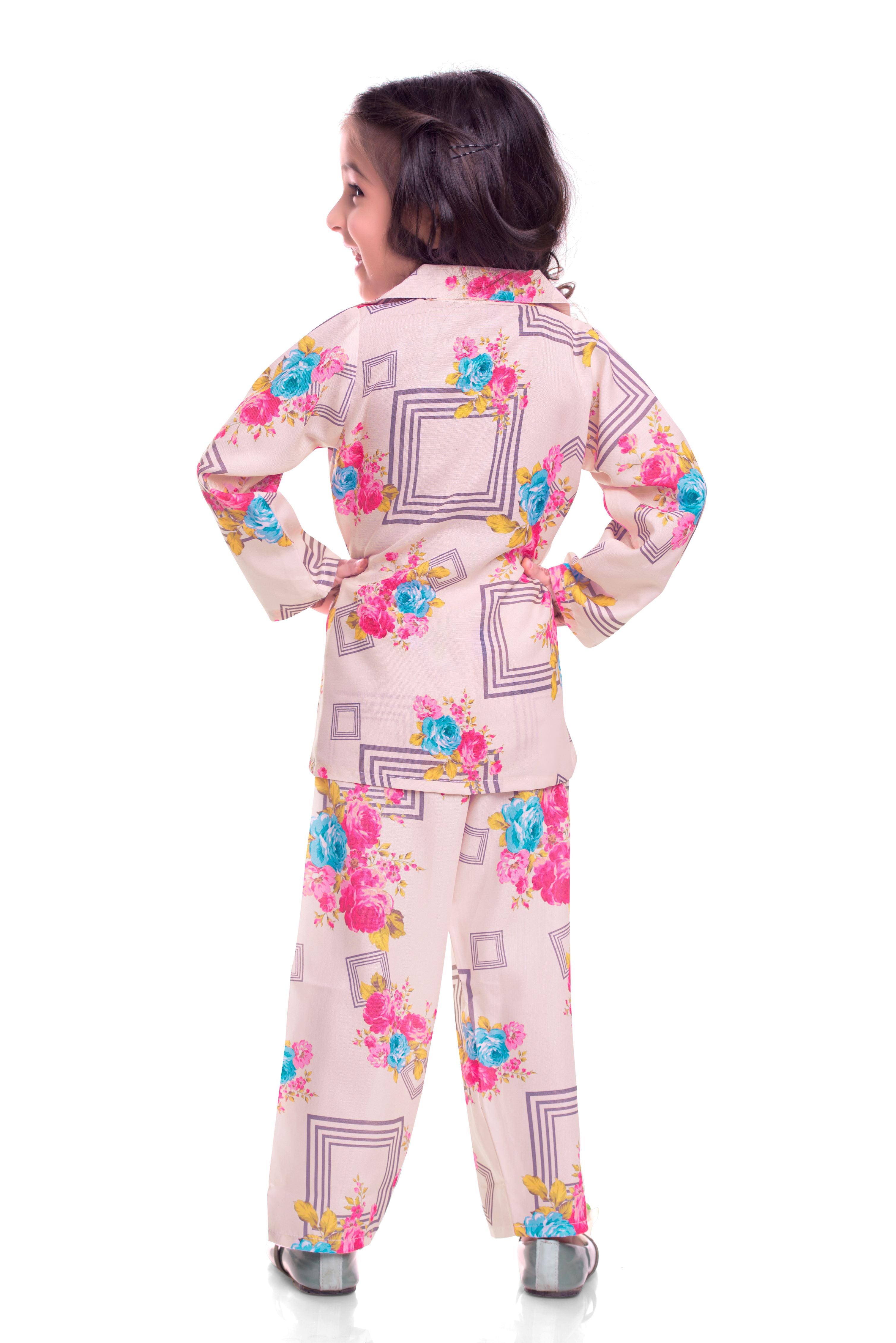 ๐ธ Pink Floral Printed Night Co-Ord Set for Kids ๐ผ