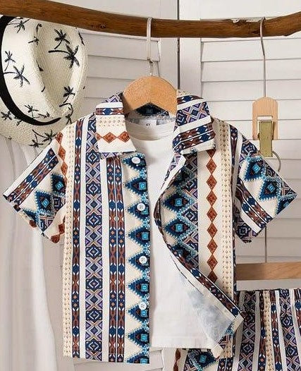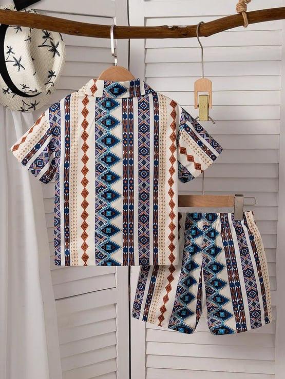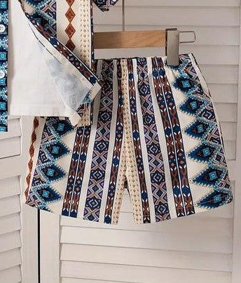 Crafted from breathable, lightweight fabric, this outfit is perfect for summer days, beach outings, or casual gatherings. The vintage-inspired tribal design brings a boho-chic vibe to your child's look while keeping them cool and comfy.